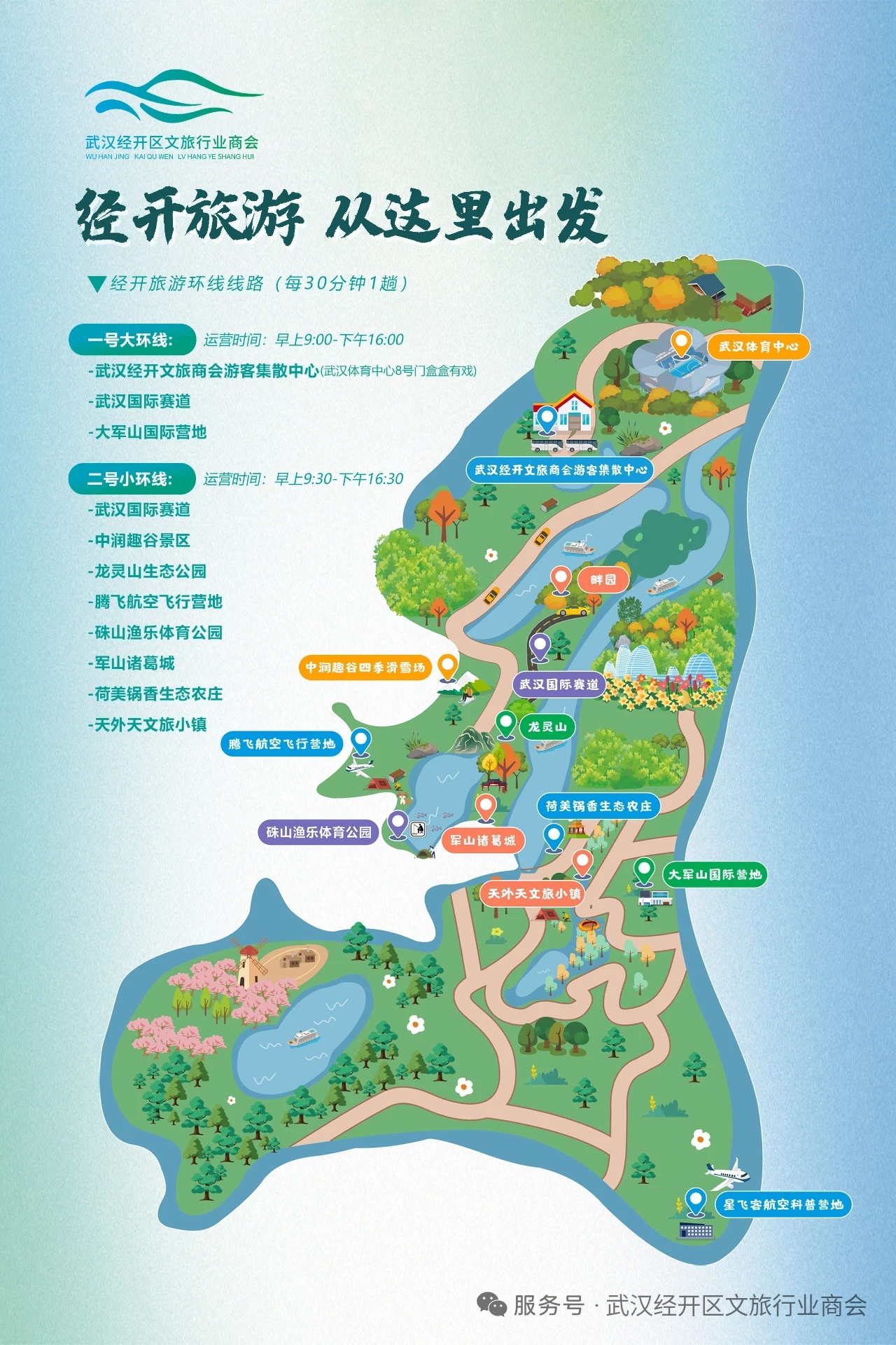 1号大环线:武汉经开文旅商会游客集散中心(武汉体育中心8号门盒盒有戏)—武汉国际赛道—大军山国际营地