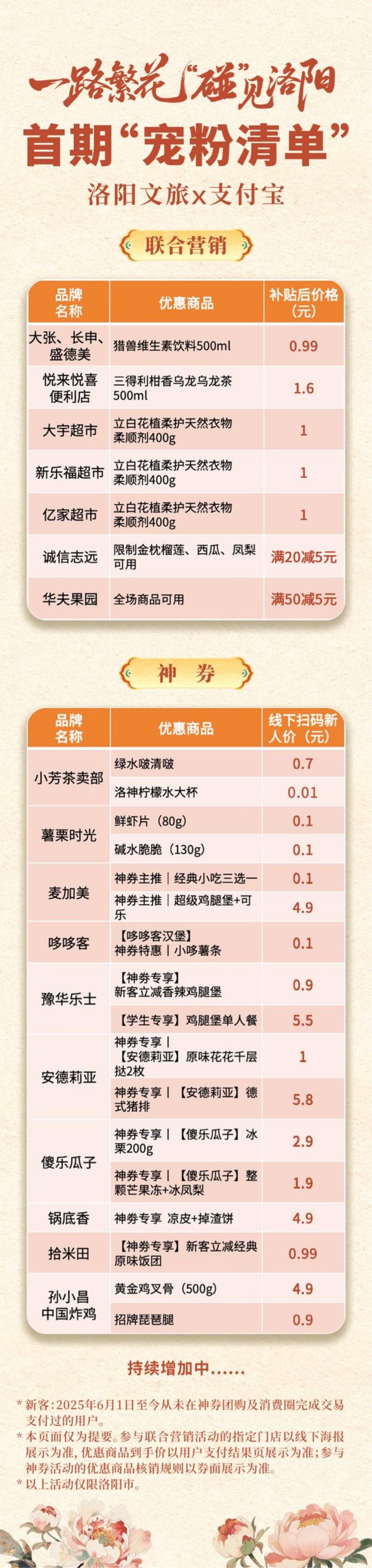 4月16日,洛阳文旅联合支付宝再度发布宠粉清单,集结超30家优质品牌商家,打造吃住行游购娱全场景福利矩阵,碰一下1元起购买品牌商品,精准抓住洛阳全城宠粉流量,依托支付宝数字化平台,将全网关注度转化为商家实打实的营业额。